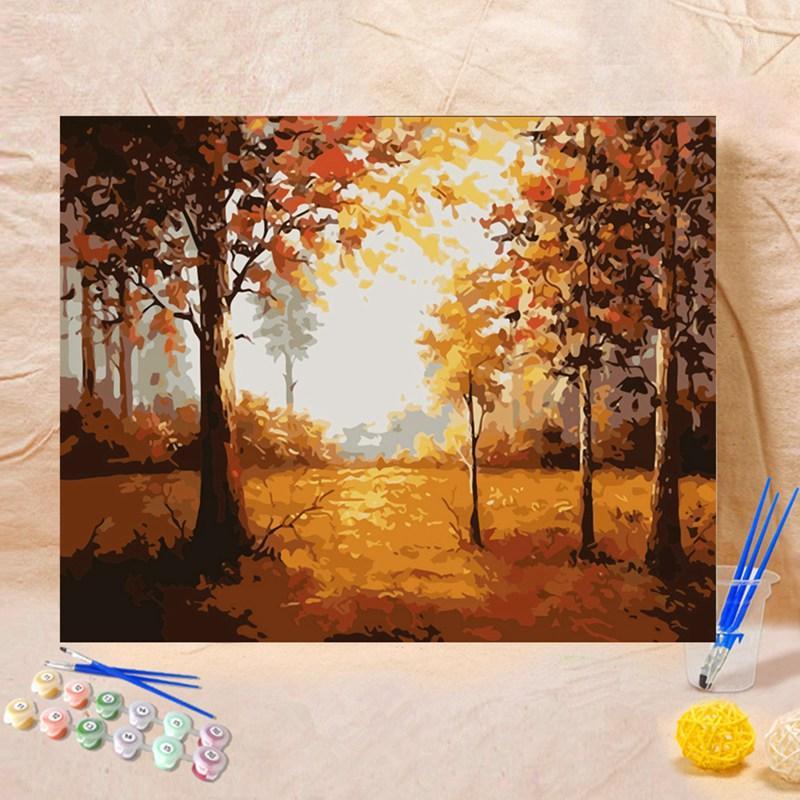 Herbst Wald Landschaft Diy Malen Nach Zahlen Kits Acryl Gemalde Auf Leinwand Home Decor Fur Einzigartige Wand Kunstwerk 40x50cm Gerahmt Amazon De Kuche Haushalt