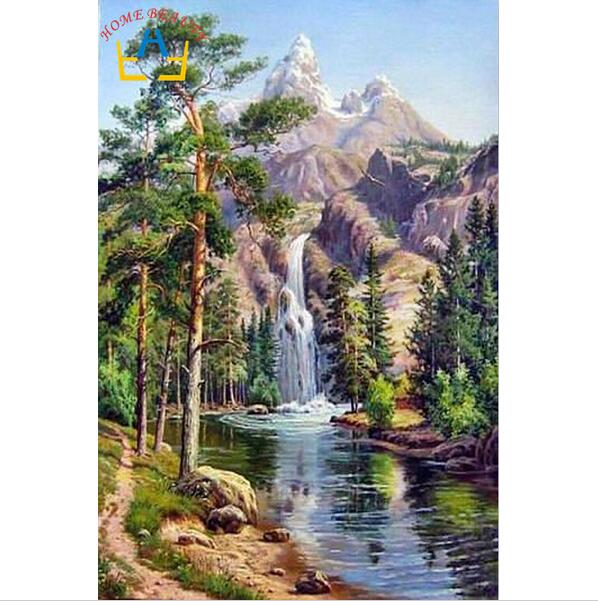 Zhenc 5d Diy Quadratisch Diamant Malen Zeichnen Basteln Forest Mountain Wasserfall Stein Landschaft Stickerei Naht Full Hss Decor Kreuzstich Kits 60x90cm Amazon De Kuche Haushalt