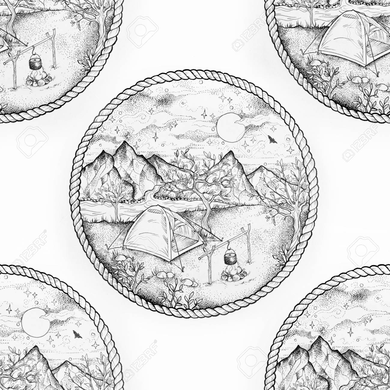 Nahtloses Zeichnen Eines Feiertags In Einem Kampieren Auf Natur Auf Einem Weissen Hintergrund Lizenzfreie Fotos Bilder Und Stock Fotografie Image 76436623