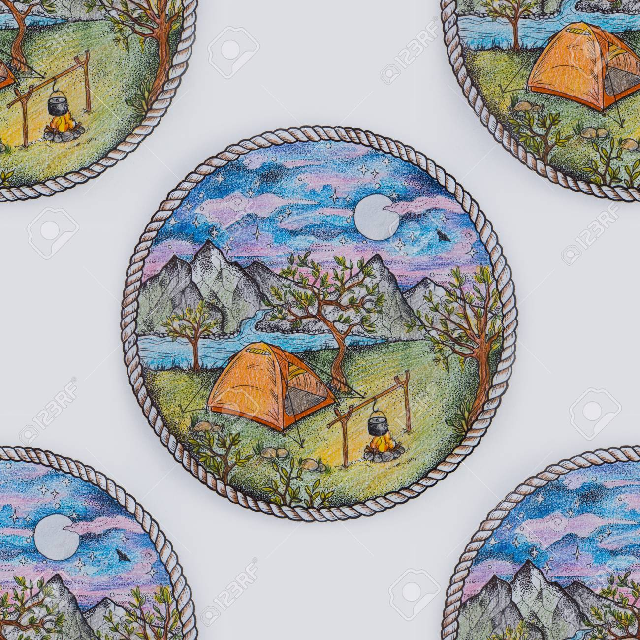 Nahtloses Zeichnen Eines Feiertags In Einem Kampieren Auf Natur Auf Einem Weissen Hintergrund Lizenzfreie Fotos Bilder Und Stock Fotografie Image 76580597
