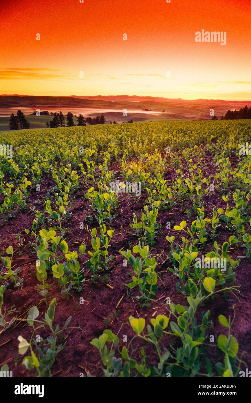 Landschaft Landschaft Mit Grunen Erbsen Feld Bei Sonnenuntergang Bei Colfax Washington State Usa Stockfotografie Alamy