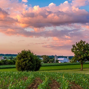 Bauernhof Sonnenuntergang Landschaft Scheune Felder Land Etsy
