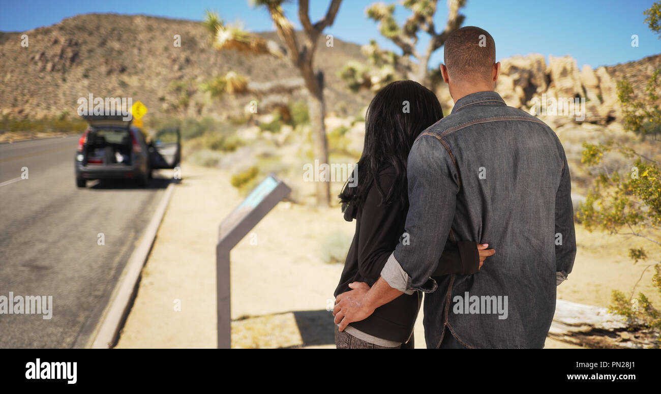 Schwarz Paar Auf Road Trip Stop Auto In Der Wuste Schone Aussicht Zu Bewundern Stockfotografie Alamy